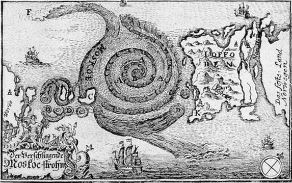 In alten Seekarten wurde sie mit mit abschreckenden Illustrationen und Warnungen versehen. In den Romanen von Edgar Allan Poe und Jules Verne spielt die Strömung ebenfalls eine Rolle.