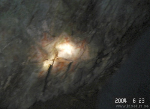 Die berühmten Felsmalereien im Licht einer schwachen Taschenlampe.